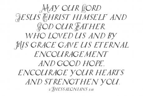 "May our Lord Jesus Christ himself and God our Father, who loved us and by His grace gave us eternal encouragement and good hope, encourage your hearts and strengthen you." -2 Thessalonians 2:16