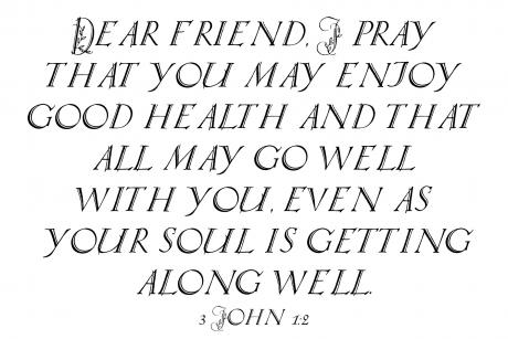 "Dear friend, I pray that you may enjoy good health and that all may go well with you, even as your soul is getting along well." -3 John 1:2