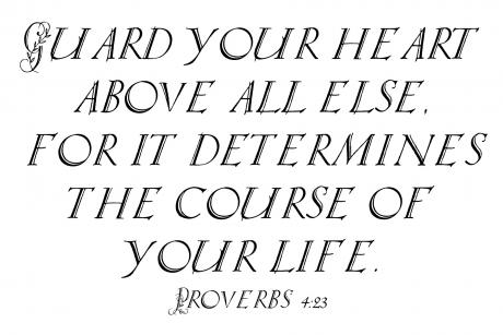 "My child, pay attention to what I say. Listen carefully to my words. Don't lose site of them. Let them penetrate deep into your heart, for they bring life to those who find them, and healing to their whole body. Guard your heart above all else, for it determines the course of your life." -Proverbs 4:20-23